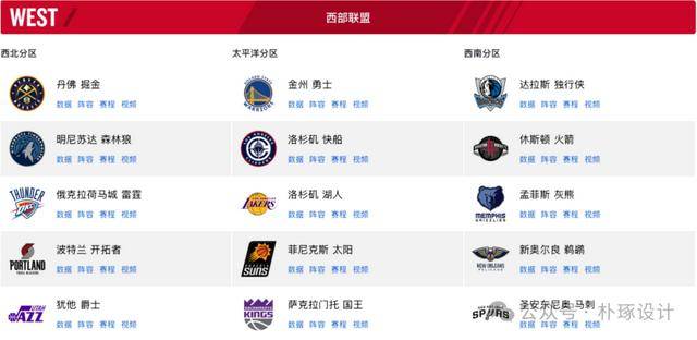 西部联盟同样分为西北、太平洋、西南三个分区,十五支球队的 LOGO,带着西部独有的狂野与豪迈,也融入了现代科技的创新元素。