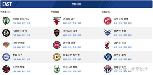 东部联盟分为大西洋、中央、东南三个分区,十五支球队的LOGO风格迥异,既有老牌劲旅的复古坚守,也有新生代球队的创新突破。