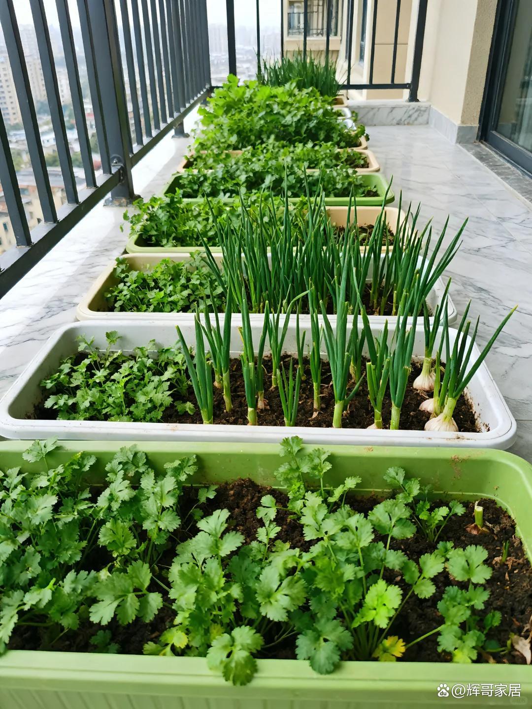 比如我们常用到的香菜,小葱,蒜苗等等,都可以种在阳台,随时吃,随时摘,还可以为阳台增加一抹绿色。