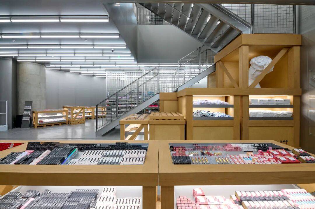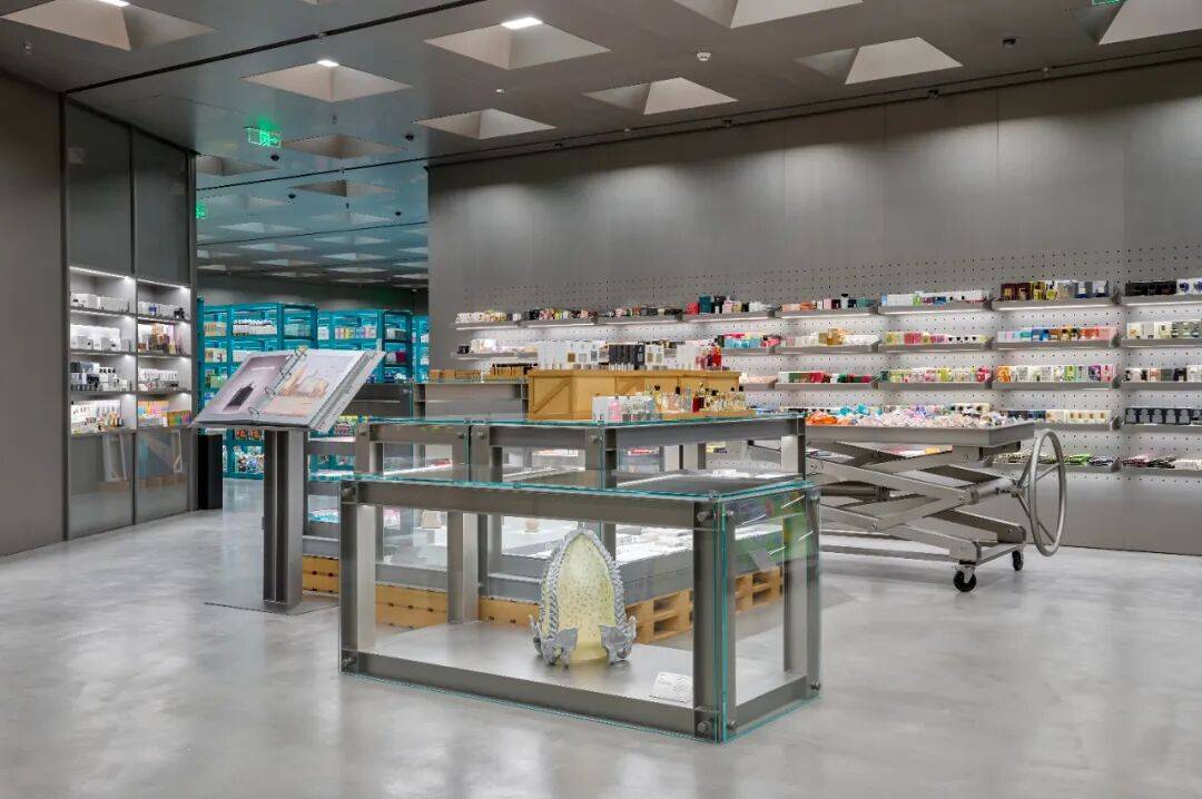 本次焕新门店以金属与玻璃骨架营造轻盈开放的场域,将艺术品与美妆产品在极简框架同陈列,打造兼具艺术策展氛围与零售功能的复合美学空间。室内依托焕新后的双层结构,形成连贯的探索路径,消费者可于门店入口处领取观展手册,依循手册指引在空间中自由漫步,实现观展与购物的深度融合。