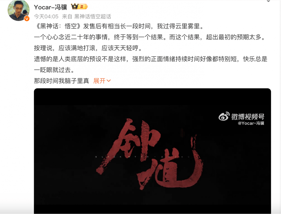 冯骥解释说,“DLC当然是个不坏的选择,但此时此刻,我们更想先做一款黑神话的新作——新的英雄,新的玩法,新的视觉,新的技术,新的故事。放开手脚,大胆尝试,不拘定法,从零开始。”目前,《黑神话:悟空》官方账号已更名为“黑神话”,简介、认证也已改为“《黑神话》系列游戏统一官方账号/官方微博”。(TechWeb)