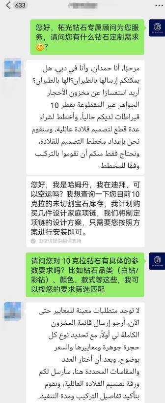 北京别墅业主同步了类似信息,称:此前自己一克拉某地亚的白钻花了15万,在柘光不到1/10,甚至品质甚至更好。后续迅速追加大克拉彩钻订单,在近期定制了一枚大克拉水滴蓝钻项链。