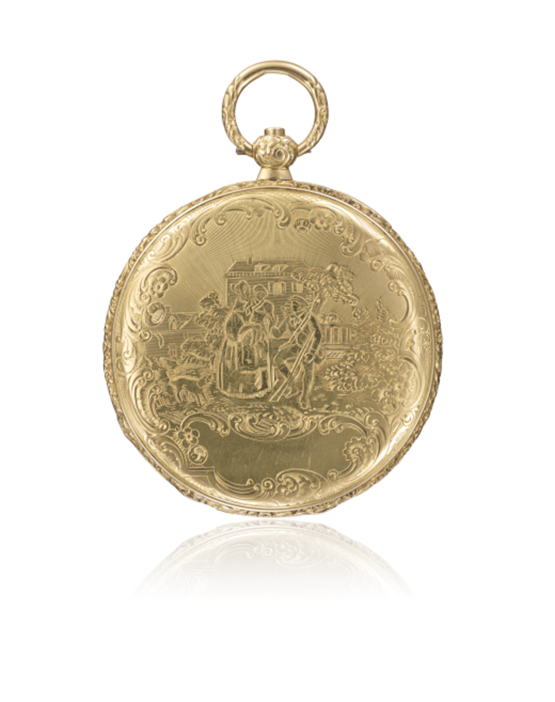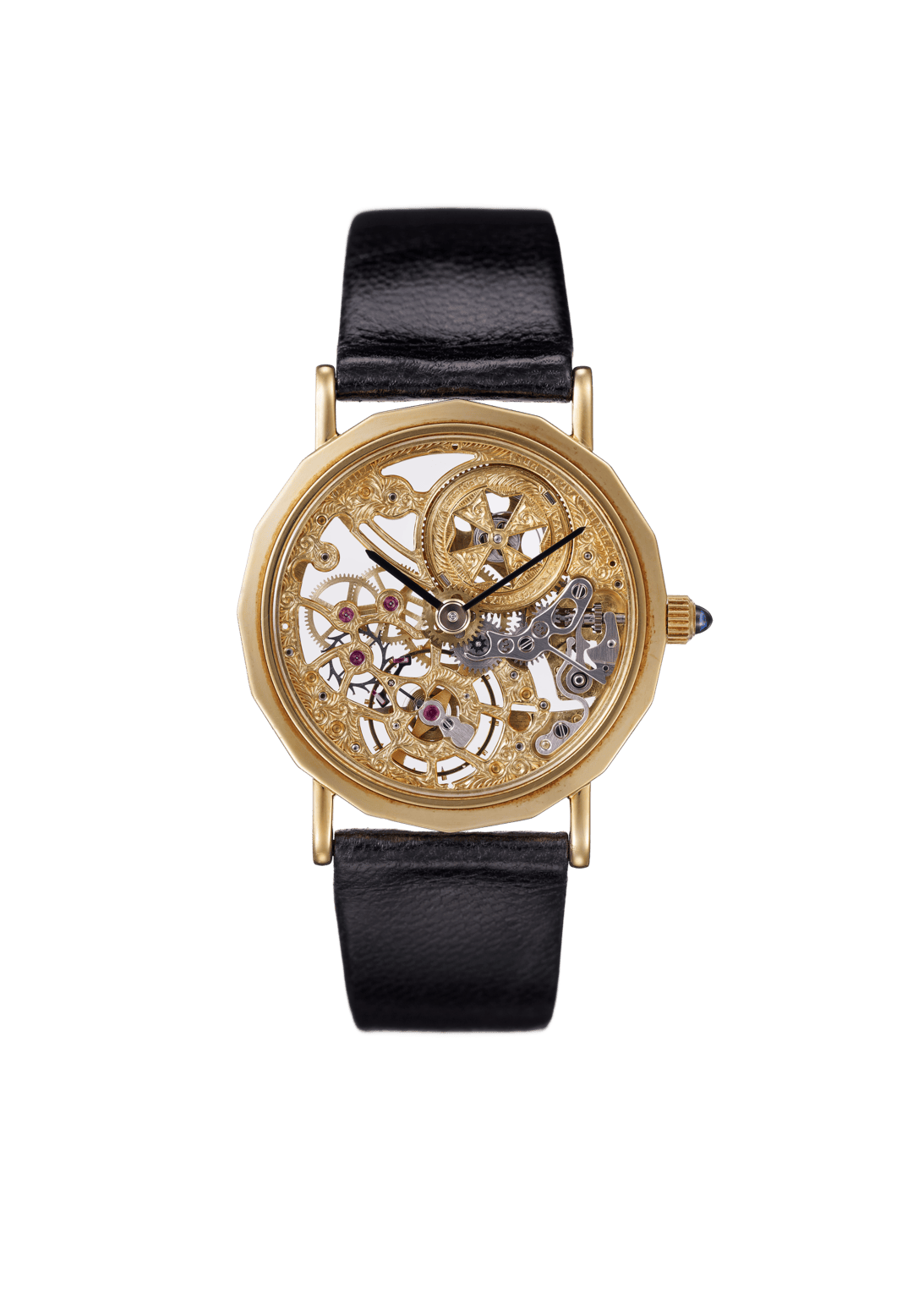 空间内,江诗丹顿悉心甄选的Heritage典藏名作陈列于独立展柜。一枚1819年问世的18K黄金怀表(典藏编号10850),其表盖与表背运用浮凸雕刻技艺,分别雕饰钓鱼狩猎图案,表环饰以精致植物纹样,表盖下的银质表盘更镌刻两束自然灵动花卉,尽显品牌早期对艺术工艺的超卓驾驭。另一枚1983年诞生的18K黄金镂雕腕表(典藏编号10744),搭载1950年代问世的1003机芯——当时最纤薄的机械机芯之一,厚度仅1.64毫米。经镂雕处理的表盘展露机械构造的精密美感,诠释江诗丹顿对技艺与美学精益求精的哲学。