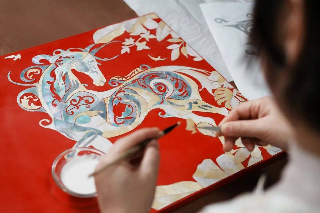 在叶晶晶眼中,螺钿从不只是一门手艺,更是“把自然、时间和人的心性结合在一起的艺术”。她在创作中始终顺应贝壳的天然纹理与光泽,让材料自然“说话”。“每当我在光下反复调整只有零点几毫米的贝片,看着纹路从隐约到清晰,光泽从收敛到流转,都能强烈感受到其中流淌的生命力故事。这个过程急不来,也取不得巧,它教会我耐心、克制与对自然的敬畏。”