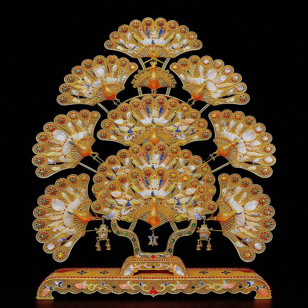 在产品工艺与品类创新上,太府卿以黄金为基底原料,延伸出丰富多元的艺术品类:金镶玉作品将金玉之美完美契合,传承郏县金镶玉制作技艺的几十道复杂工序,尽显“碎物复原、掩瑕装饰”的核心匠心;金包瓷器系列实现贵金属与传统瓷艺的跨界融合,碰撞出古典与现代交织的艺术火花;金饰银器系列则在细节处彰显非遗功底,花丝镶嵌的精巧、錾刻工艺的厚重在此一一呈现;金丝掐珐琅书画更是将非遗技艺推向新高度,以金丝为脉、釉彩为魂,在方寸之间勾勒东方美学意境,堪称“东方装饰美学的集大成者”。这些作品不仅是材质与工艺的完美结合,更是中国非遗技艺活态传承的生动实践,为助力中国非遗文化走出去奠定了坚实的产品基础。