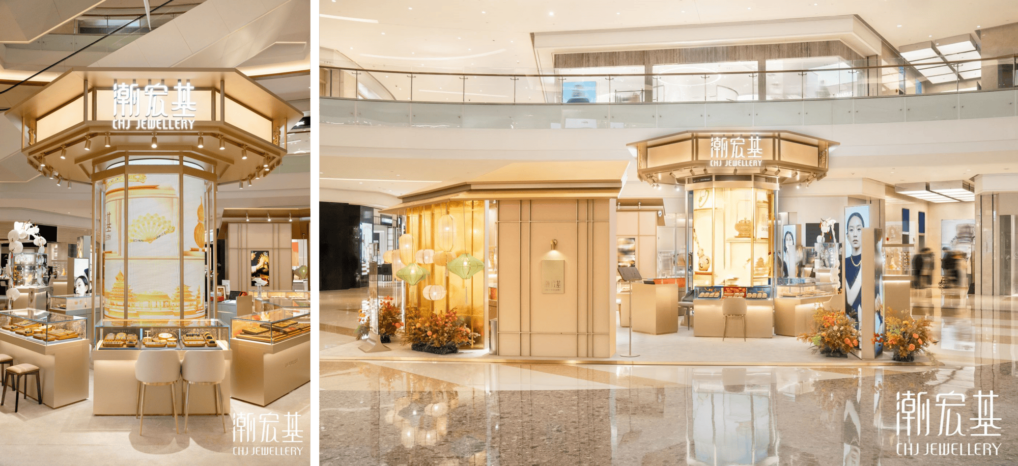 “花丝世家主题概念空间”与非遗艺术展,成功将深度的文化内容,植入高流量、高消费力的现代商业场景中,实现文化叙事与商业转化的无缝衔接。空间设计本身即是一次叙事。此次概念空间取意中国传统“走马灯”,以悬挂宫灯与层层屏风营造移步换景的沉浸感,从馆藏级花丝臻品、当代珠宝设计,到此次与羽扇等在地非遗共创的作品交织陈列,直观呈现花丝技艺从历史到当代、从殿堂到生活的演进。空间中特别设置的“传习角”,以现代展陈方式解构花丝工序,并展示新锐设计师的概念手稿,将“世家”的定义从封闭的血脉传承,拓宽为向未来开放的创新生态。