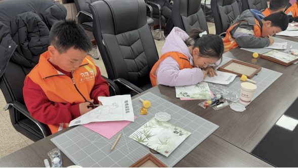 活动以马踏飞燕为主题的非遗锡纸画进行手工DIY,孩子们从描摹线稿入手,一步步完成压纹塑形、上色晕染与装裱收尾,在亲手创作的过程中尽享非遗手工的乐趣,也收获了专属于自己的艺术作品。这些作品不仅淋漓尽致地展现出非遗技艺的独特魅力,更巧妙融合了“铜奔马”承载的丝路文化内涵、马年生肖的吉祥寓意与民族团结的精神内核。