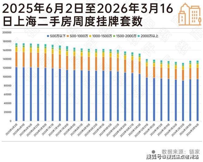 截至2026年3月16日,上海二手房周度挂牌量已较2025年6月2日下降22.23%。