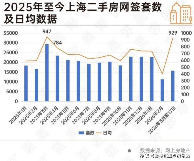 累计来看,截至2026年3月17日,上海二手房3月共成交15799套,为2025年3月成交套数的53.82%,日均成交量达929套,2025年至今仅次于2025年3月的高峰946套,且明显高于排第三的2025年4月的783套。